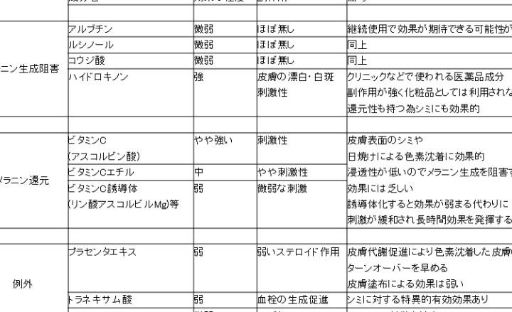 美白 成分の効果