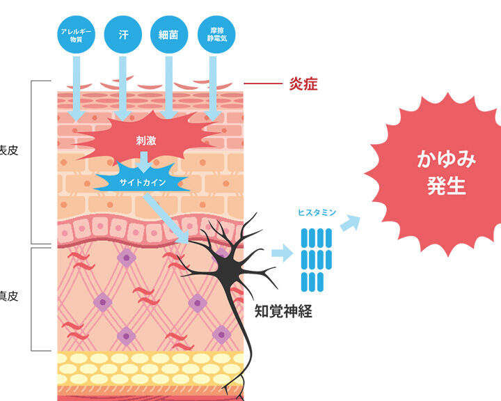 - サブスタンスP:神経細胞で生成され、かゆみの感覚を強化する。