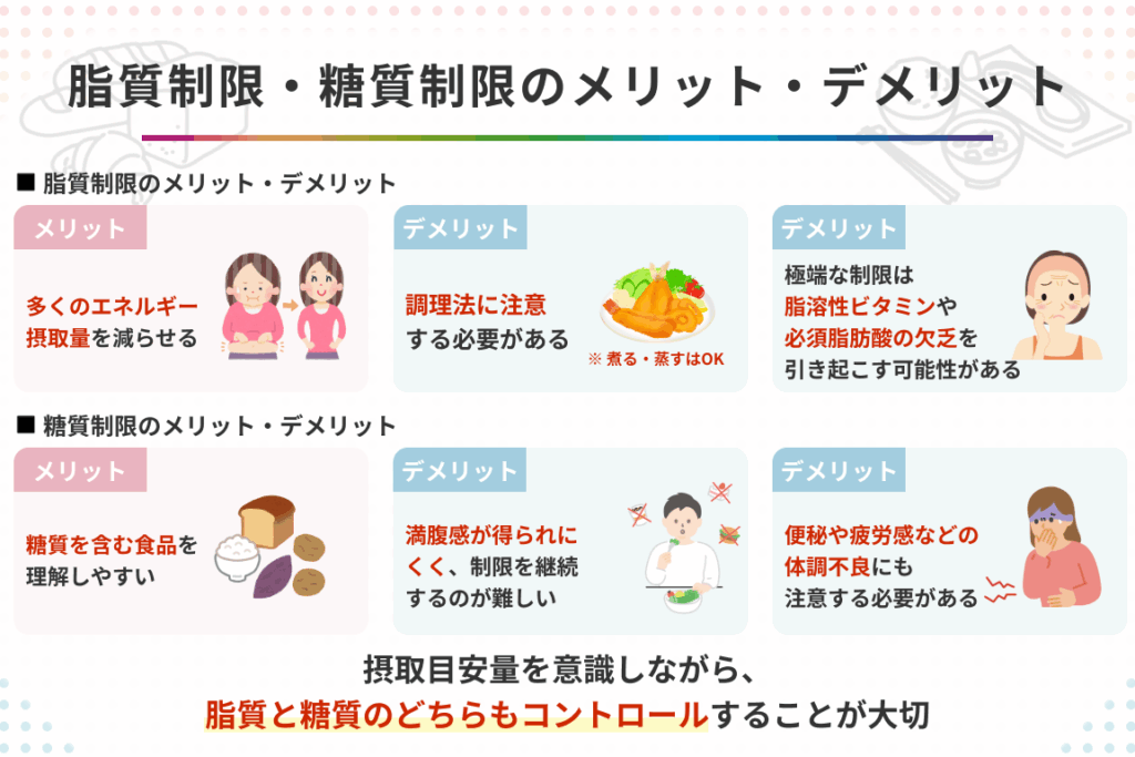 さらに、糖質制限は生活習慣病のリスクを低下させることも研究で示されています。以下に、糖質制限の具体的なメリットを挙げます: