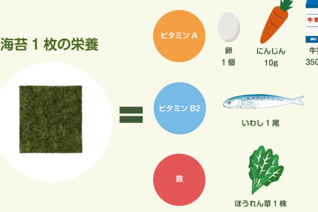 海苔は、さまざまな栄養素が豊富に含まれており、私たちの健康をサポートします。以下に、その主な成分を詳しく見ていきます。