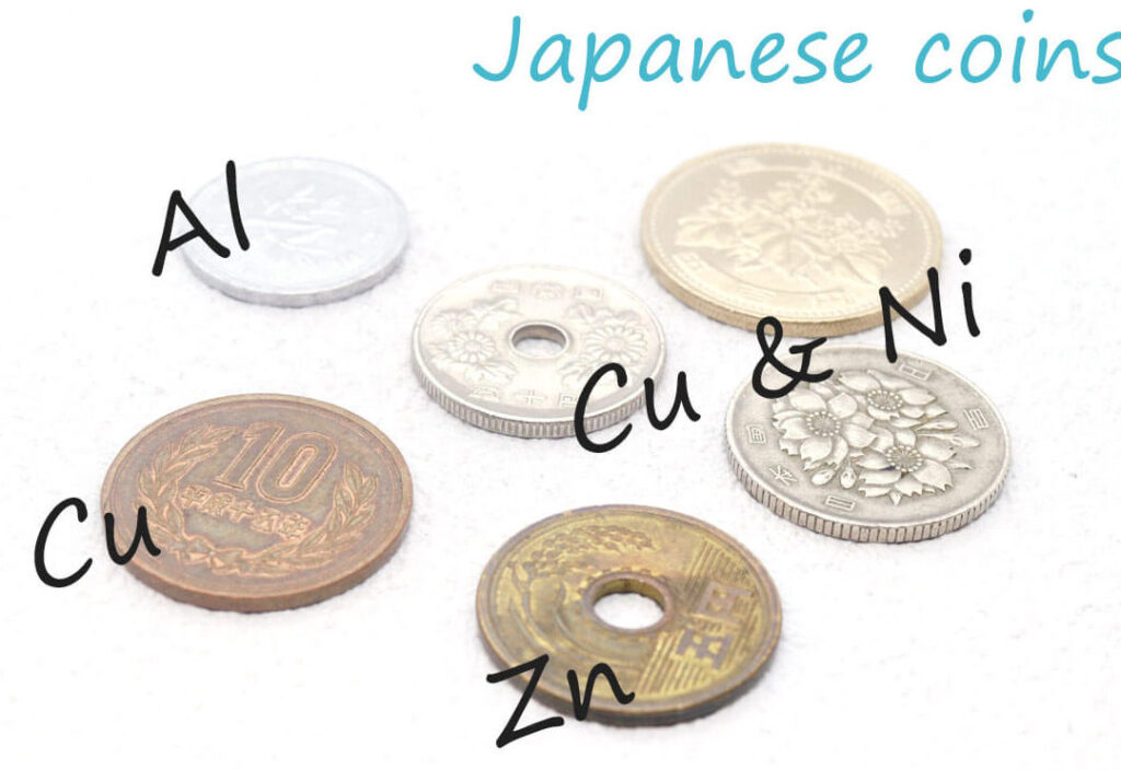 日本の硬貨は、主に以下の成分から構成されています。