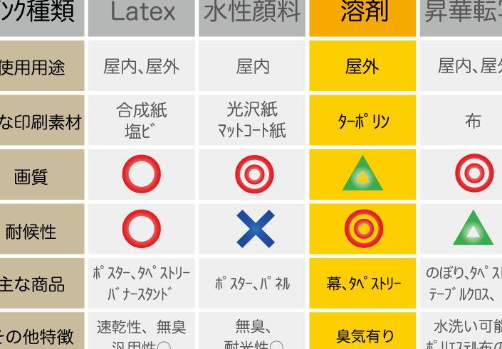 - バインダー:色素を紙などの表面に固定する役割。これにより、印刷物の耐久性が向上する。