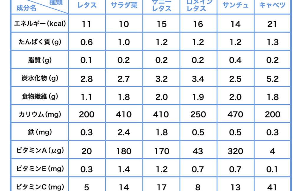 レタス成分表は、私たちの食事における栄養価を理解するのに役立つ重要な情報源です。この情報を知ることで、健康的な選択を促進できます。栄養素の詳細を把握することで、食生活をよりバランスよく整えることが可能になります。例えば、レタスにはビタミンA、ビタミンK、葉酸、食物繊維が含まれています。これらの成分は、免疫機能や骨の健康をサポートします。