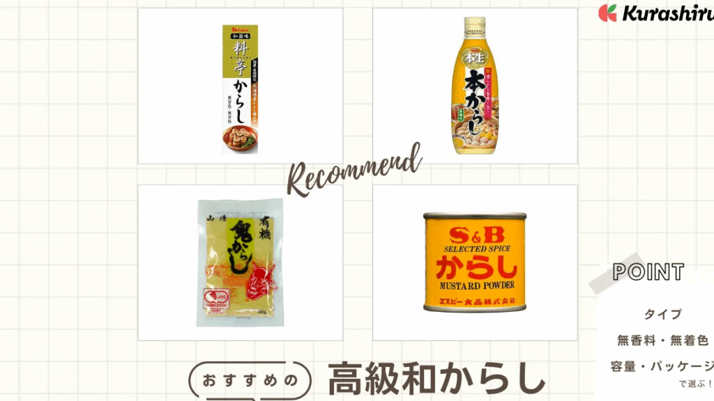 - 和食: 寿司や刺身に生のからしを添えることで、鮮度が際立ちます。