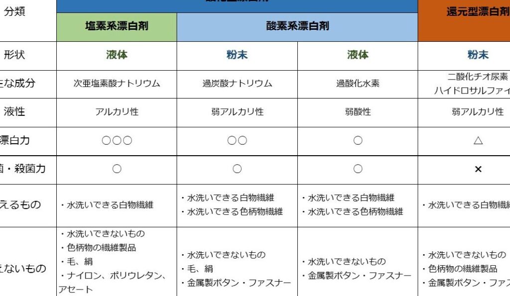 - 成分の理解:次亜塩素酸ナトリウムや過酸化水素など、各漂白剤の成分はそれぞれ特性があります。適切な知識を持つことで、不適切な反応を避けられます。