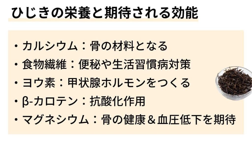ひじきにはさまざまな健康効果があり、特にその栄養素による影響が注目されている。以下に、ひじきの重要な健康効果を詳しく解説する。