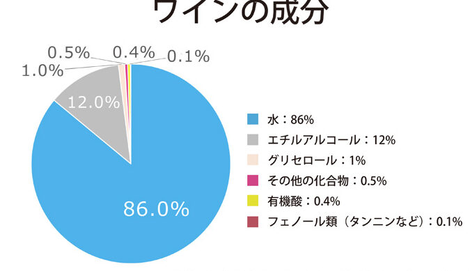 - 水分: ワインの約80%を占めています。水分は、他の成分を溶かし、ワインのバランスを取ります。