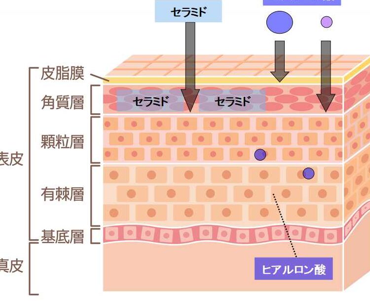 - 乾燥肌:ヒアルロン酸やセラミドが有効で、水分を保持し、バリア機能を強化します。