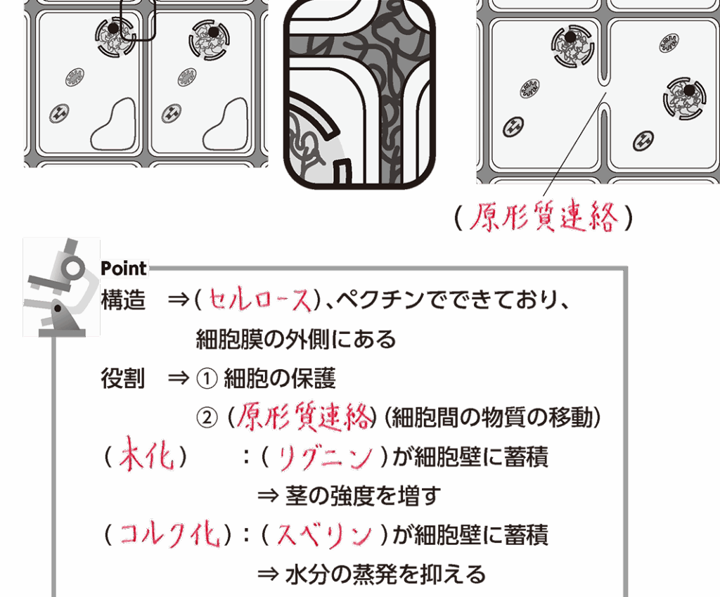 細胞壁は、構造的な支持を提供する重要な部分である。主な役割には以下が挙げられる。