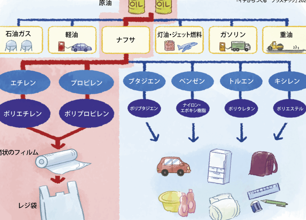 ナフサは、石油化学産業での基本的な原料です。たとえば、以下のような用途があります。
