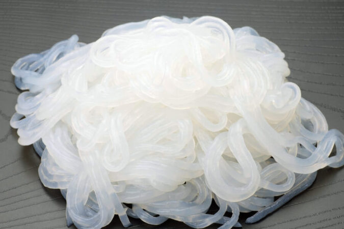 しらたきは、主にグルコマンナンという成分から作られている食品です。この成分は、こんにゃくいもから抽出され、粘り気がある特性を持っています。しらたきは、低カロリーでダイエットに適した食材とされています。たとえば、100グラムあたりのカロリーは約5キロカロリーです。