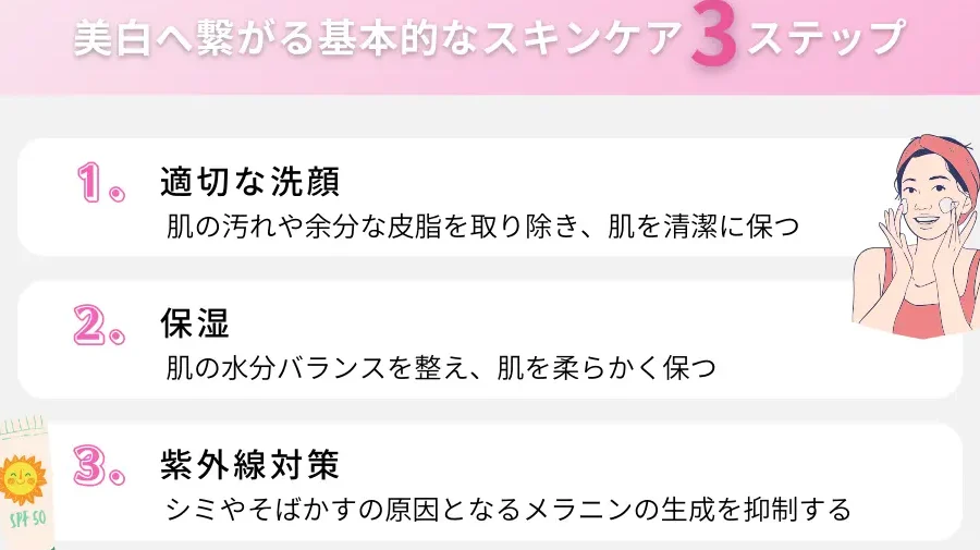 自宅で美白ケアを行うためには、手軽に取り入れられる方法がいくつかある。我々は以下の方法を推奨する。