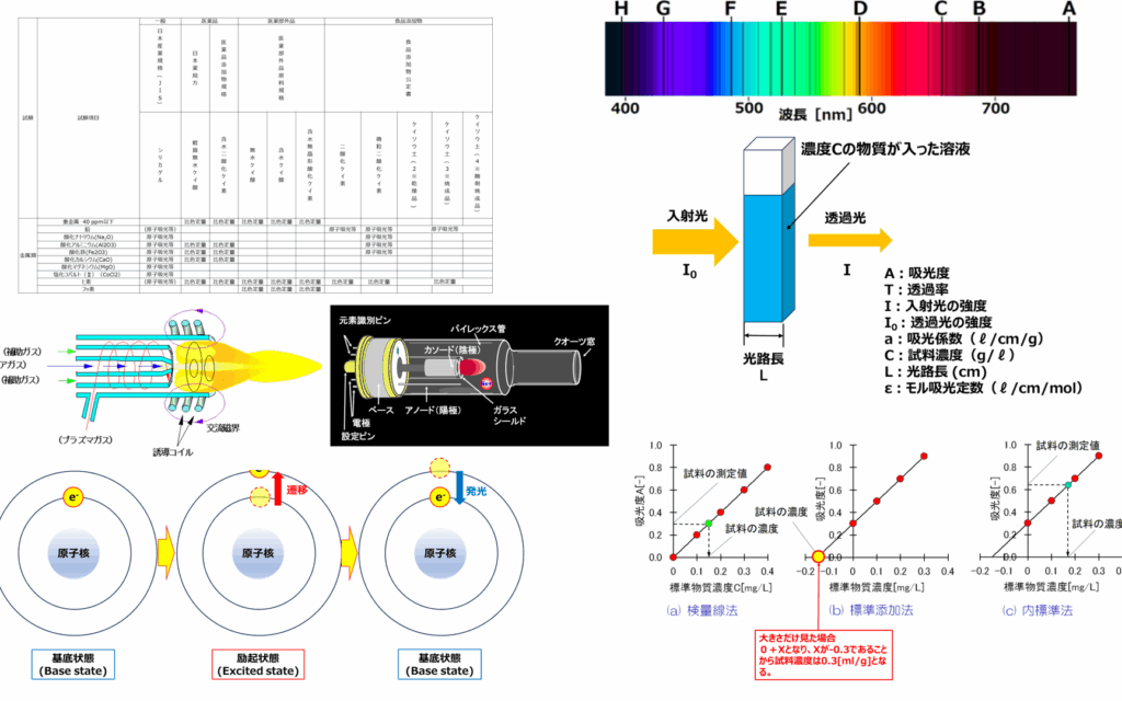 - 環境科学: 環境中の金属汚染を評価するには、成分分析が不可欠です。水質分析や土壌調査では、有害物質の濃度を把握するために使用します。