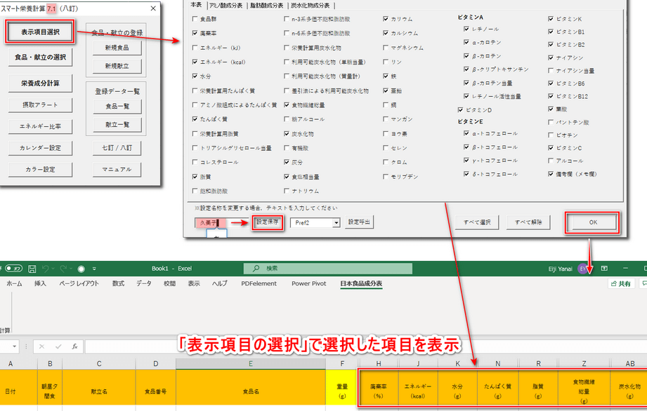 - カスタマイズ可能なマイ食事: 自分の食事内容を入力し、成分をトラッキングできます。