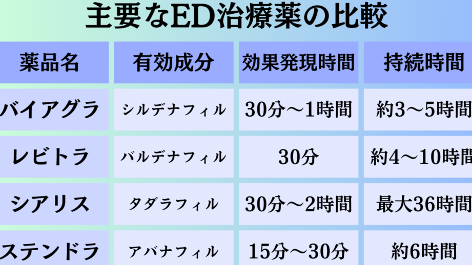 このように、ED治療薬は迅速かつ持続的な効果を提供し、生活の質を向上させる役割を果たします。