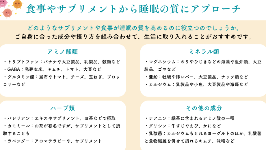 睡眠サプリの主な成分