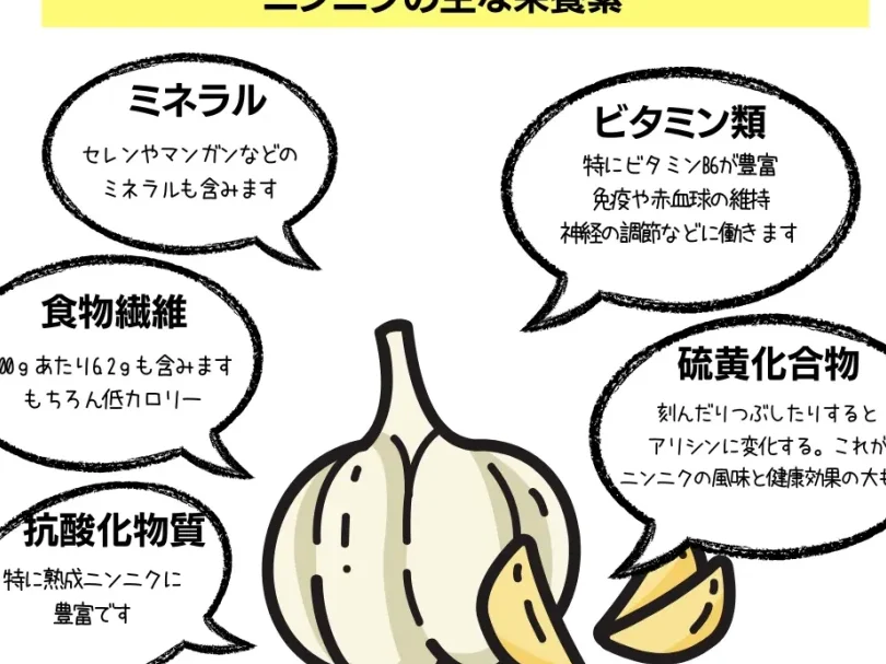 - アリシン: 抗酸化作用や抗菌作用が期待できる成分です。