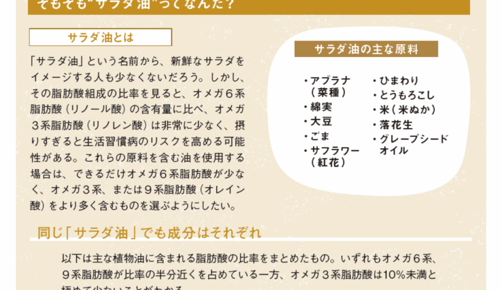 良い脂肪を意識しながらバランスの取れた食事を心掛けることで、健康を維持する手助けになります。サラダ油の成分表を参考にし、自分たちのライフスタイルに合った油を選ぶことで、より良い食生活を実現できるでしょう。