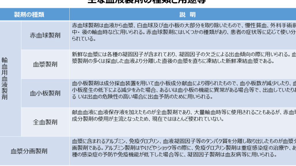 - 【特定の患者への貢献】がん治療や手術後の患者に対して、血小板の需要が特に高い。