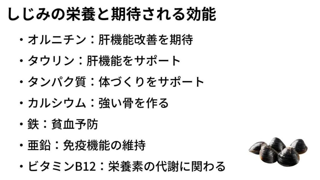 しじみには、複数の健康効果があるため、日常的に摂取することが推奨されます。以下にその効果を詳しく紹介します。