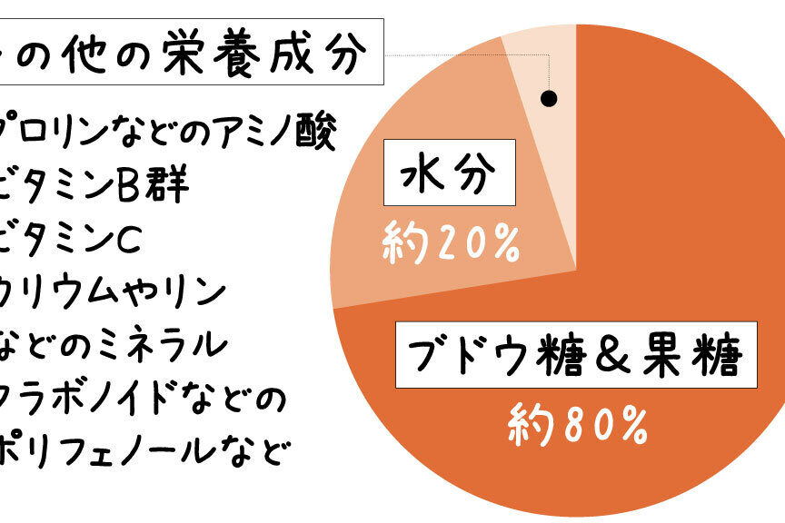 - 糖質: 主に果糖とブドウ糖を含み、エネルギー源として利用できます。