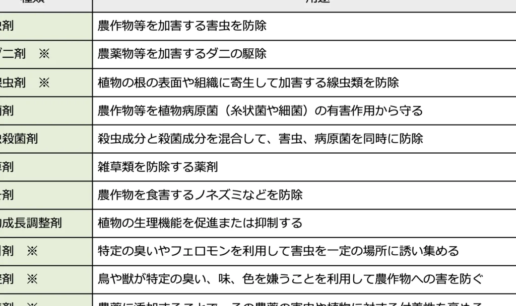 これらの目的に応じて農薬を選択し、適切な使用を心がける必要があります。