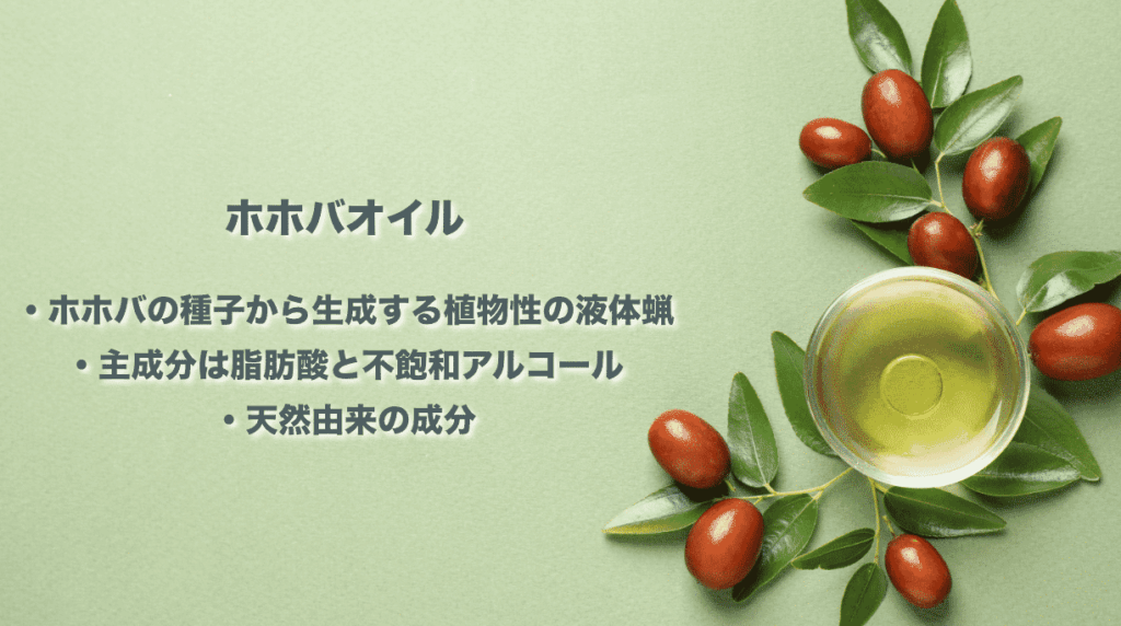 ホホバオイルは、その成分から多くの美容効果を提供します。主成分は長鎖脂肪酸エステルで、これが肌や髪に良い影響を与えます。特に、以下の成分が挙げられます。