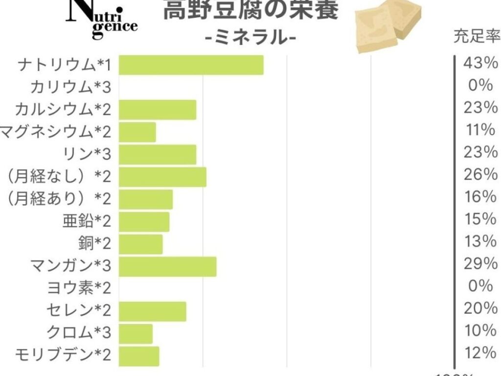 高野豆腐には、骨の健康を支える重要なミネラルも含まれています。具体的には、以下の要素が挙げられます。