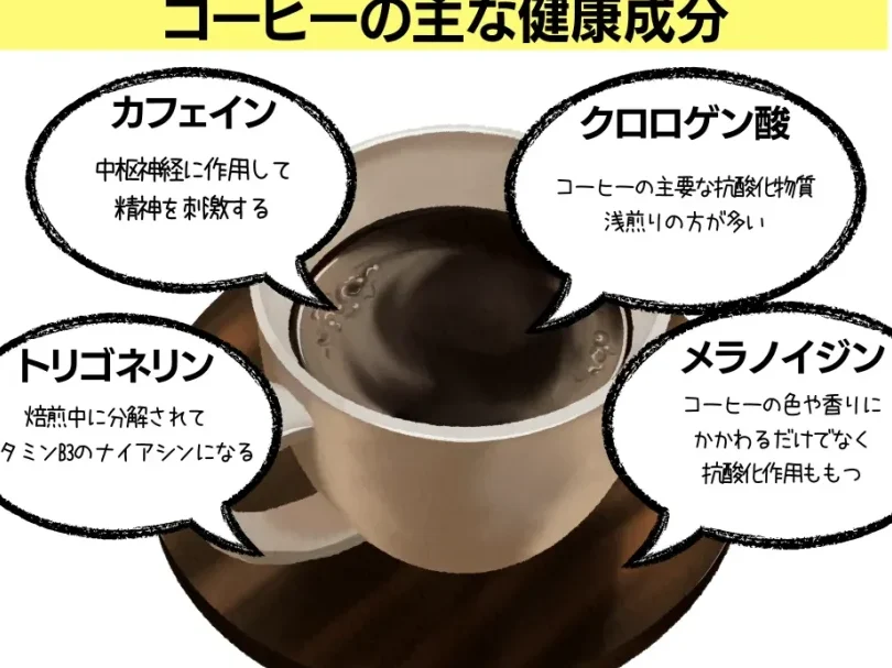コーヒー豆に含まれる成分は、健康に様々な影響を与えます。特に次の点が挙げられます。