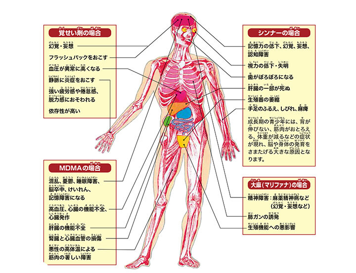 このように、身体への影響は多岐にわたるため、危険ドラッグの使用は重大なリスクを伴う。