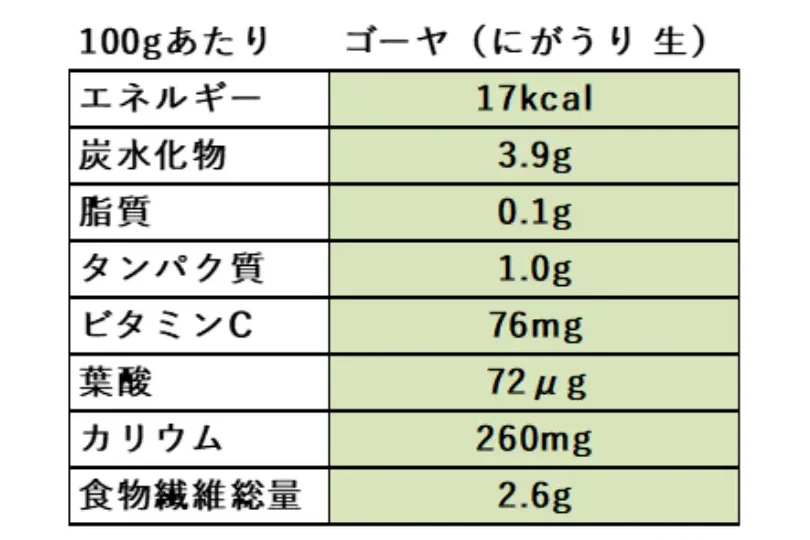 ゴーヤには多くの栄養素が含まれています。主な成分は以下の通りです: