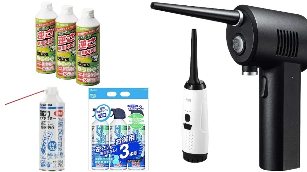 - 圧縮ガス: ほこりや小さなゴミを容易に吹き飛ばすための駆動力を提供します。このガスは、主に空気やアルゴンなどが使われる。