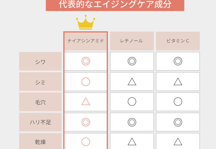 エイジングケア成分は、肌の老化を防ぎ、若々しさを保つために重要な成分です。具体的には、以下の成分が挙げられます。