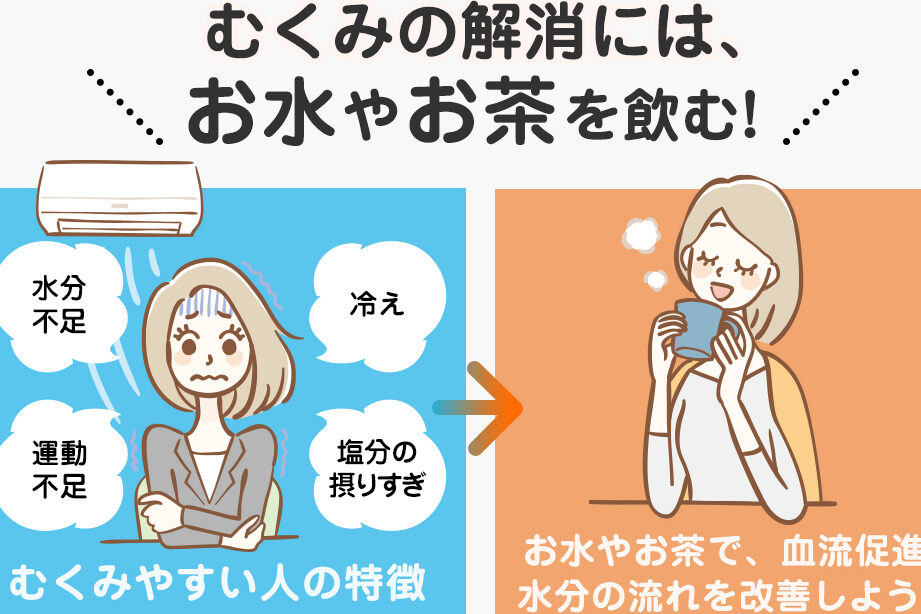 水分バランスの乱れは、むくみを引き起こす最大の要因です。体内の水分が適切に調整されていないと、細胞間に余分な水分が溜まり、むくみの原因となります。以下の要因が水分バランスに影響を与えます。