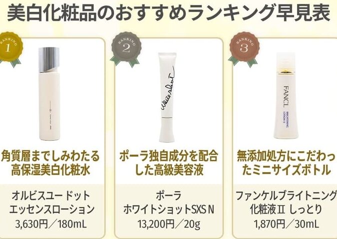 美白化粧品の成分を理解することは、効果的なスキンケアの第一歩です。私たちの肌にとって、これらの成分がどれほど重要かは言うまでもありません。肌のトーンを均一にし、シミやそばかすを改善するためには、特定の成分の効果を知っておく必要があります。