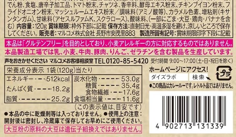 カレールーの成分はメーカーによって異なるため、以下の表に代表的な商品の成分を示す。