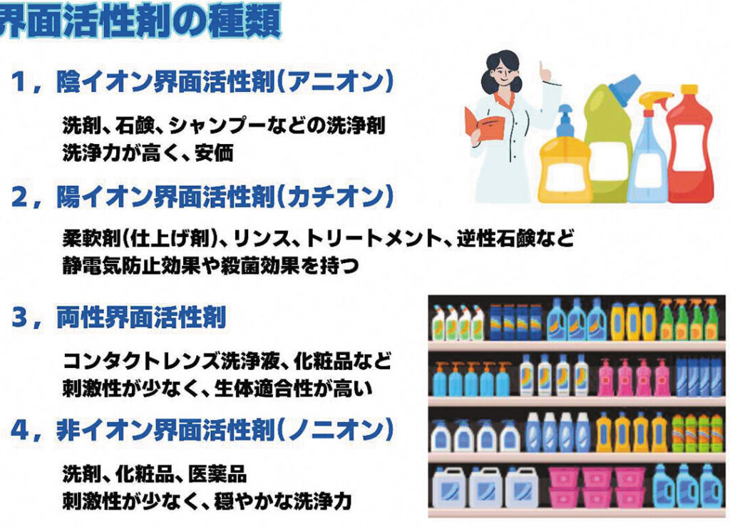私たちの日常生活には、知らず知らずのうちに多くの化学物質が存在しています。その中でも界面活性剤は特に重要な役割を果たしています。洗剤やシャンプー、化粧品など、私たちが使う製品の多くに含まれており、これらの製品の効果を高めるためには欠かせません。