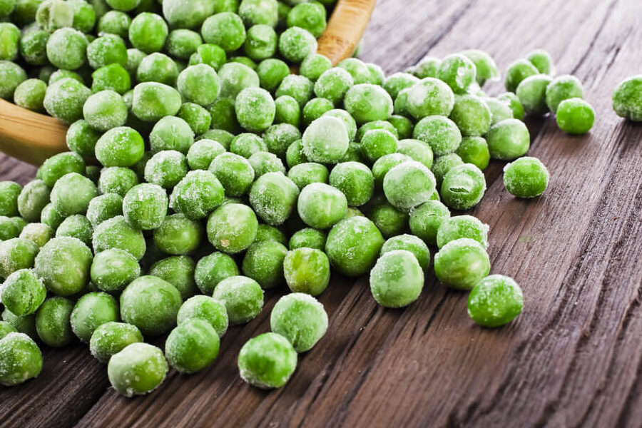 茹でる前に、グリーンピースを軽く湯がいて冷水にさらし、その後、冷凍用袋に入れて平らにして冷凍庫で保存。約6ヶ月間美味しく保てます。