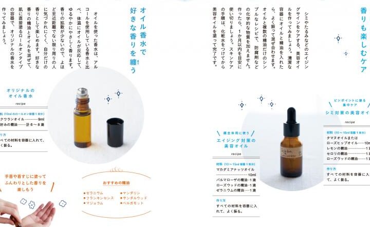 さらに、アロマオイルはマッサージや入浴に使われ、体を癒やすサポートも行います。オイルをブレンドして使うことで、個々のニーズに合わせた香りを楽しむことができ、使い方は無限の可能性を秘めています。