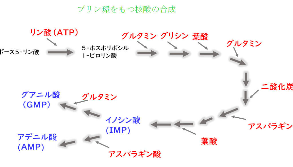 イノシン酸は、体内での核酸の代謝の結果として生成されます。具体的には、以下のステップを通じて生成されます。