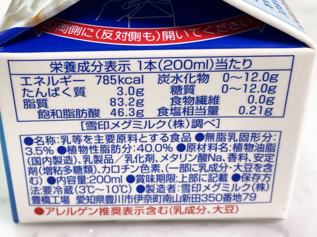 生クリームの栄養成分