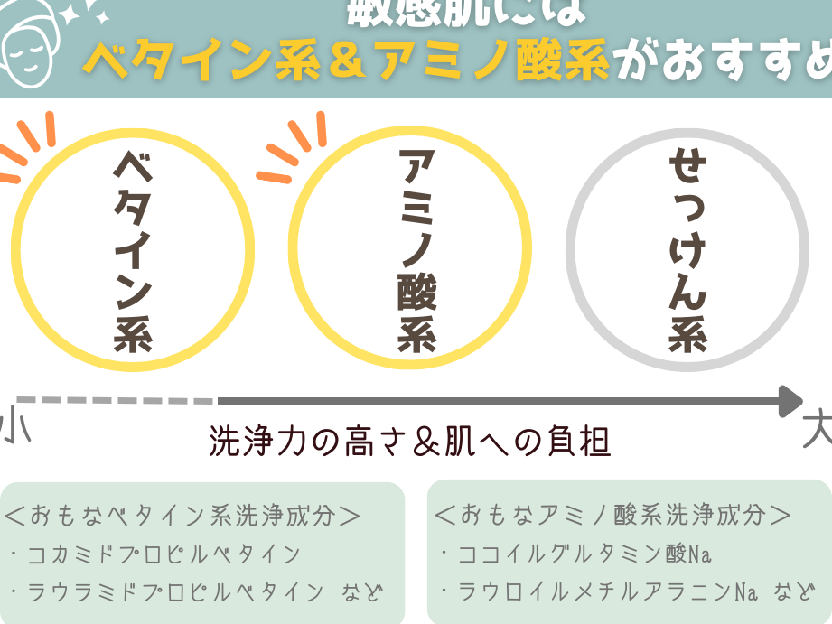 アミノ酸系洗浄成分は、一般的な洗浄成分と比べて以下のような特徴があります: