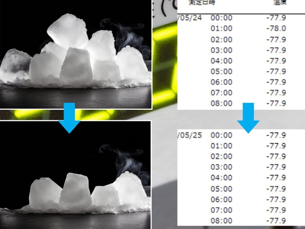 - 眼への影響: ドライアイスの霧が目に入ると、刺激や不快感を引き起こす可能性があります。作業時には適切な保護具が必要です。